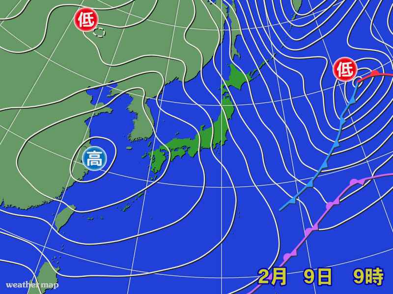 上海付近には高気圧があり、移動性となって日本列島に張り出す。