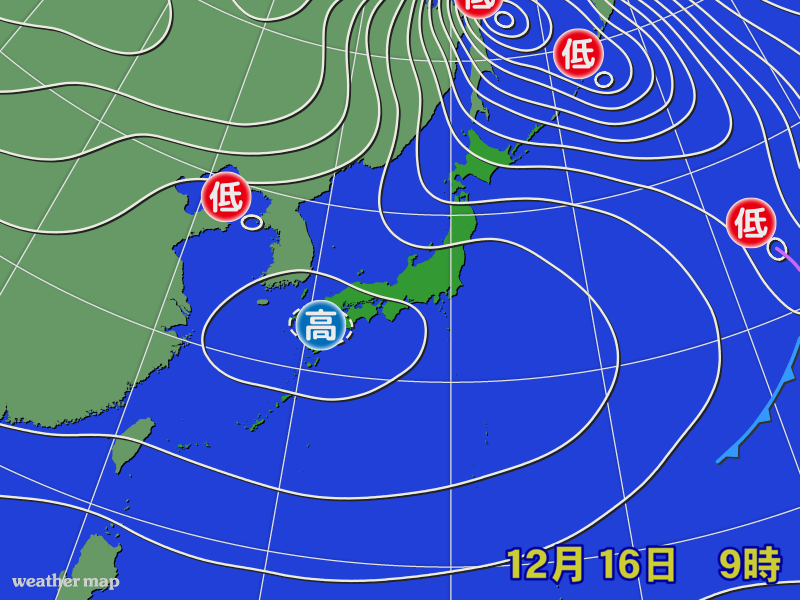 冬型の気圧配置は崩れ、高気圧が移動性となって、日本列島を覆う。