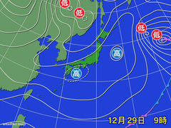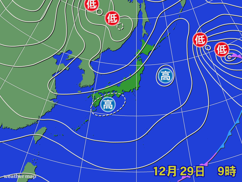 本州付近は移動性高気圧に覆われ、太平洋側を中心に晴れ間が広がる。