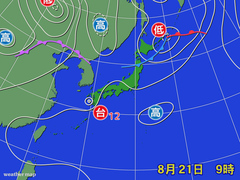 09時、鹿児島県薩摩川内市の西約90キロで台風12号発生。