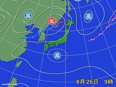 沿海州付近にある低気圧の影響で、北海道ではくもりや雨となり、