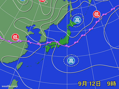 東・西日本で大気の非常に不安定な状態が続き、局地的に雷雲発達。