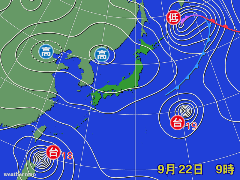 日本付近は秋の移動性高気圧に覆われて、全国的に晴れ間が広がった。