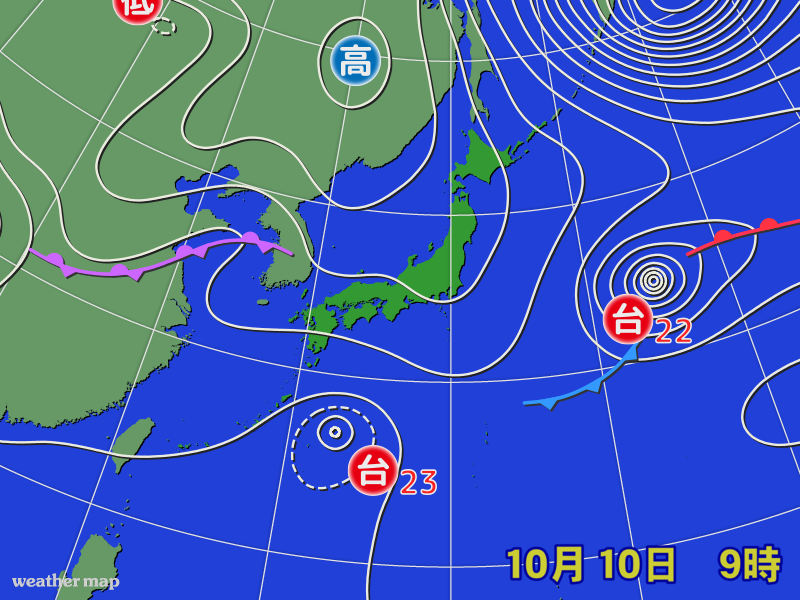 09時、台風23号は沖縄・南大東島の北東約190キロ。